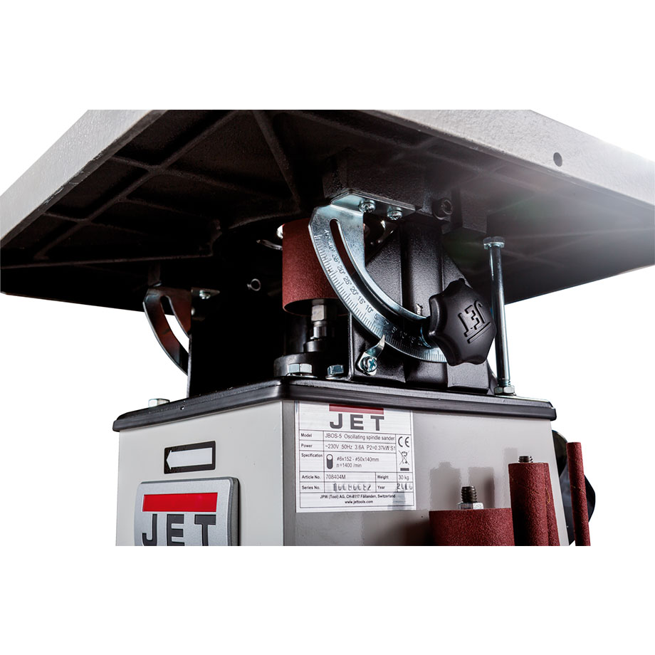 Jet JBOS-5 ist eine professionelle Schwingspindelschleifmaschine, die alles bietet, was Sie für die präzise und schnelle Bearbeitung von gekrümmten Kanten benötigen. Die Schleifmaschine verfügt über einen großen 375 x 375 mm großen Gusseisentisch, der um bis zu 45° geneigt werden kann, sowie 5 verschiedene Schleifhülsen zum Schleifen von Holzoberflächen unterschiedlicher Größe und Form. Die maximale Schleifhöhe von 100 mm ermöglicht es Ihnen, auch dickere Werkstücke zu schleifen!