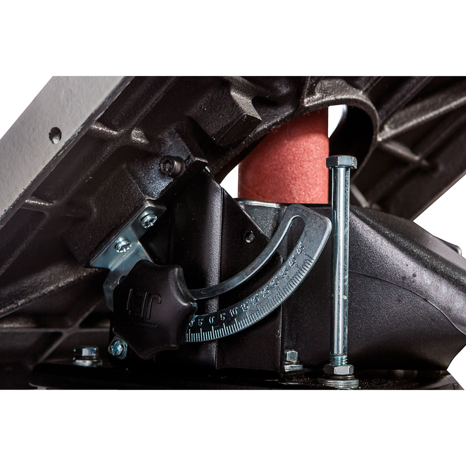 - Großer Gusseisentisch mit Neigungsoption von 0 bis 45° und gut lesbarer Skala