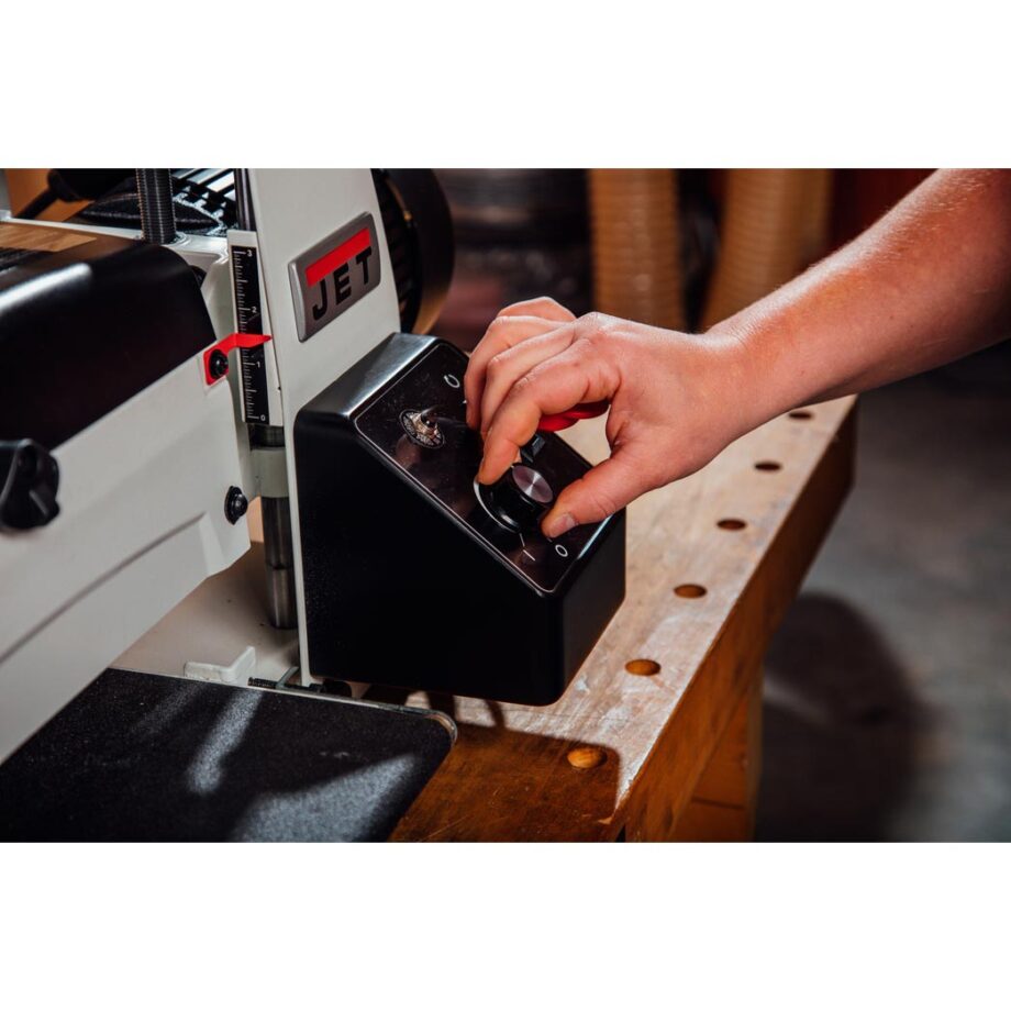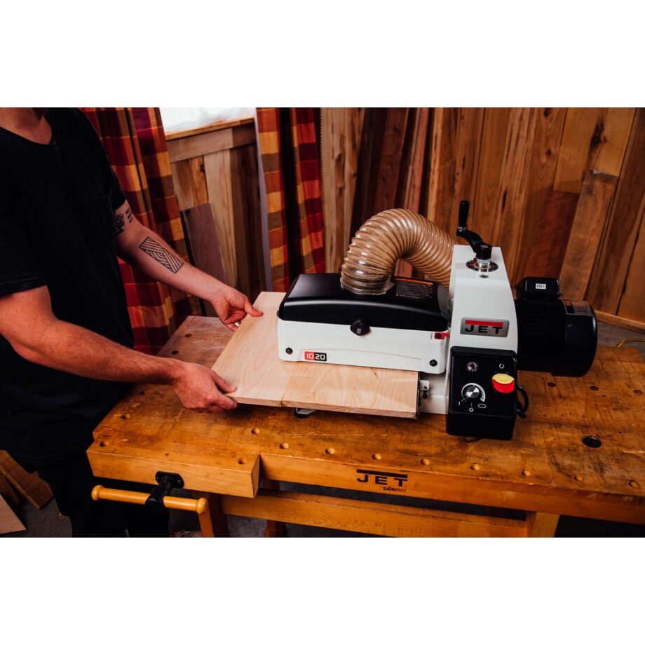 Der Jet JWDS-1020 ist eine leistungsstarke und kompakte Zylinderschleifmaschine, mit der Sie dünne Furniere und Holzstücke mit einer Dicke von bis zu 75 mm (3″) und einer Breite von bis zu 508 mm (20″) mühelos schleifen können. Der leistungsstarke 1-PS-Motor entfernt schnell Oberflächenfehler und Spuren, die von den Hobelmessern hinterlassen wurden, und verleiht dem Holz gleichzeitig eine glatte Oberfläche. Die selbstkühlende Schleifwalze verbrennt, zerkleinert oder zerreißt das Holz des zu schleifenden Werkstücks nicht, was sie zu einer ausgezeichneten Wahl für das Schleifen von Hirnholz-Schneidebrettern und anderen Harthölzern mit komplizierten Maserungen macht.