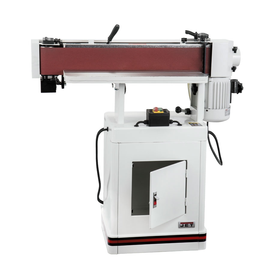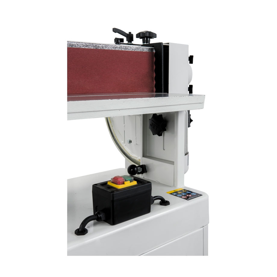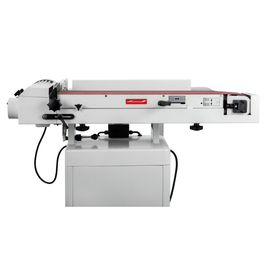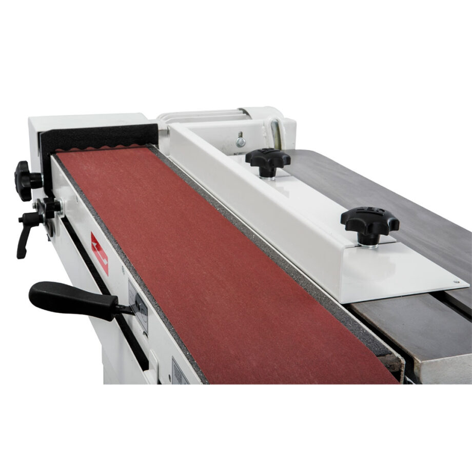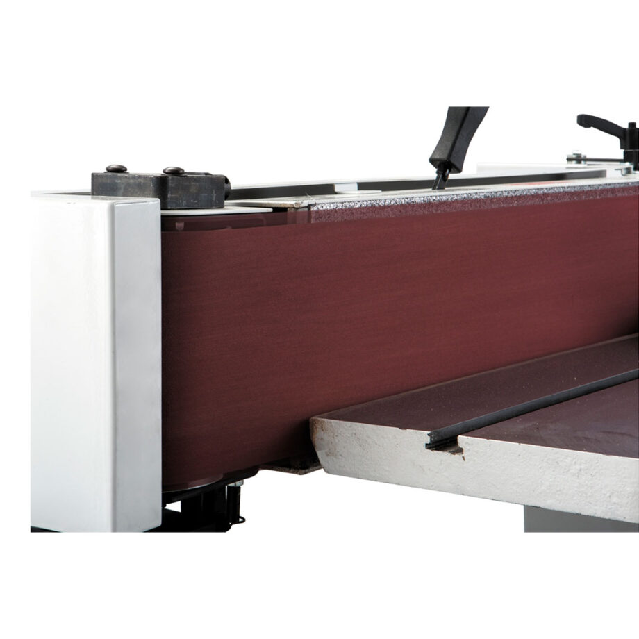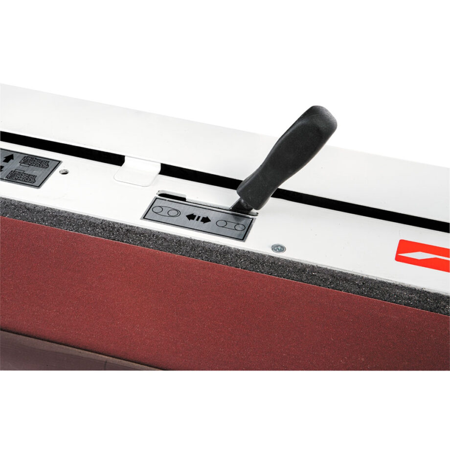 Wechseln und führen Sie Schleifbänder mühelos mit dem praktischen Schnellspannhebel und dem Präzisions-Führungsregler, während der integrierte Stauraum im vorderen Schrank mehr als genug Platz für die Aufbewahrung von Bändern und anderem Zubehör bietet.