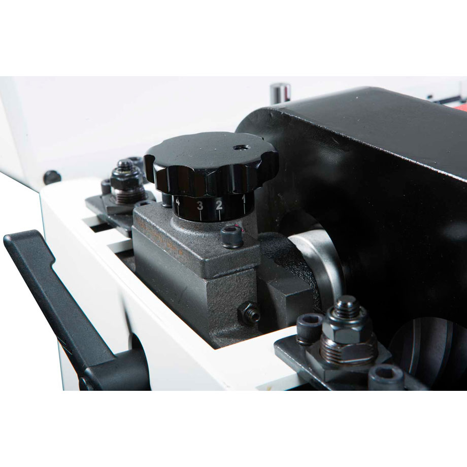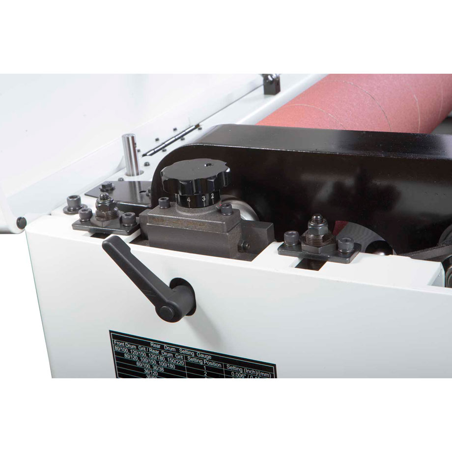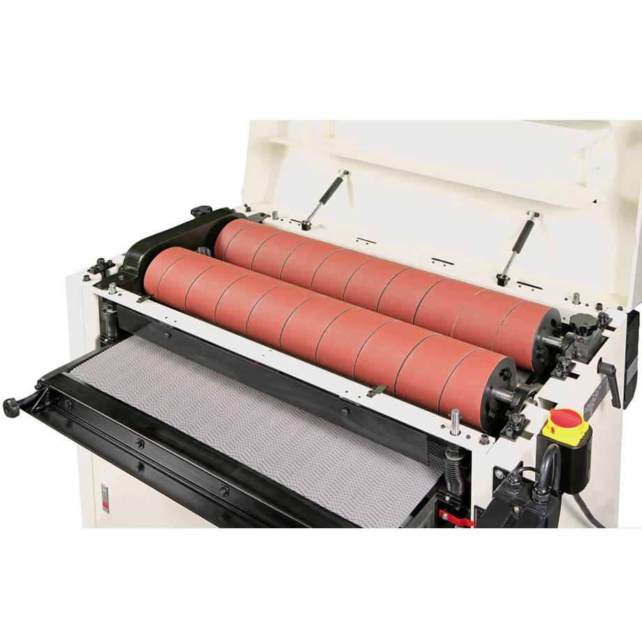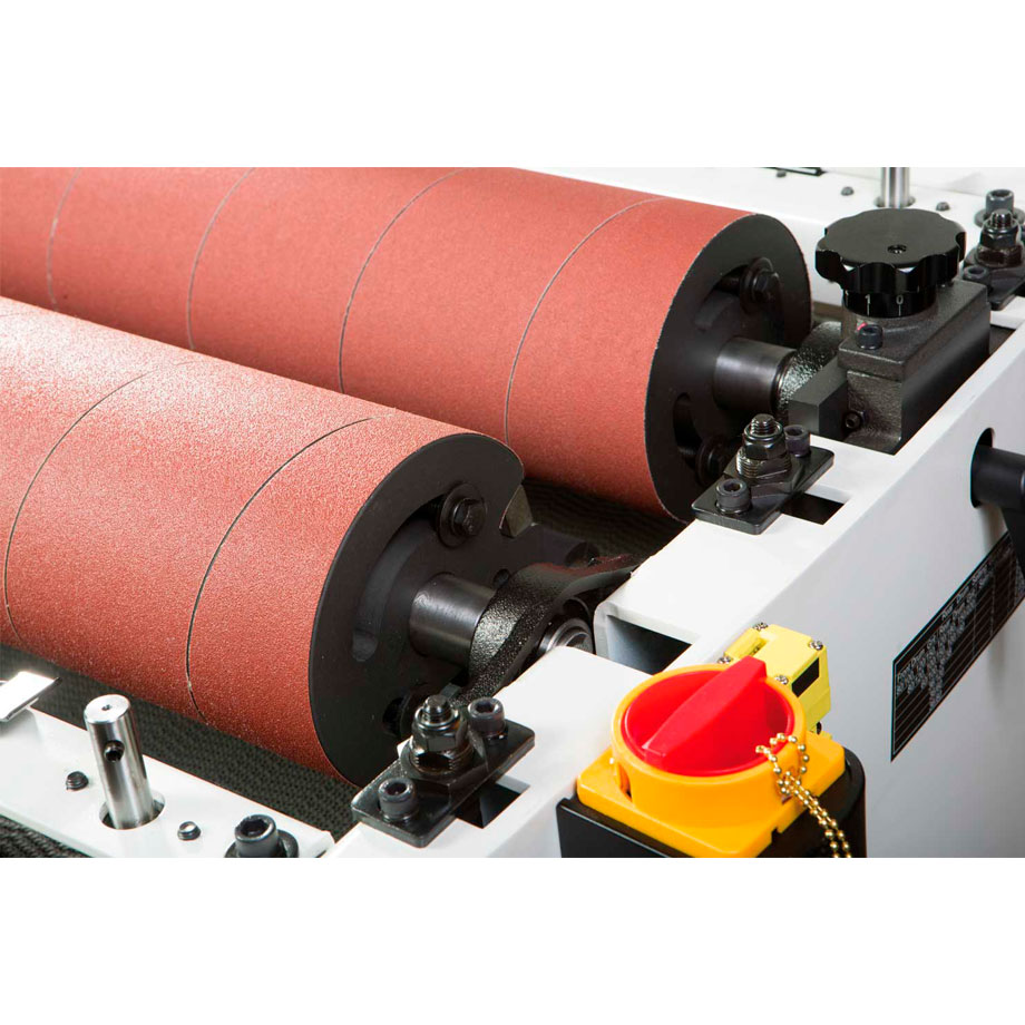 - Gumowane rolki dociskowe zapewniają dokładną kontrolę grubości i jednolite rezultaty szlifowania