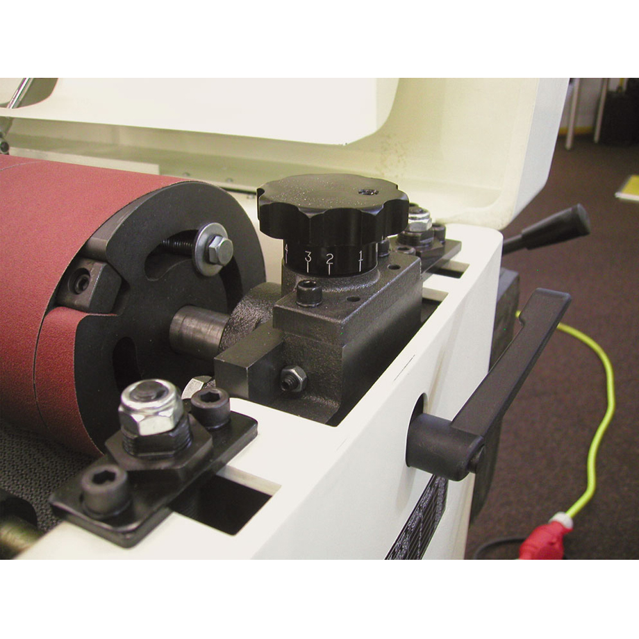 - Obsługa taśm ściernych o szerokości 76 mm lub 100 mm, spiralnie nawijanych dla maksymalnego pokrycia szlifowania