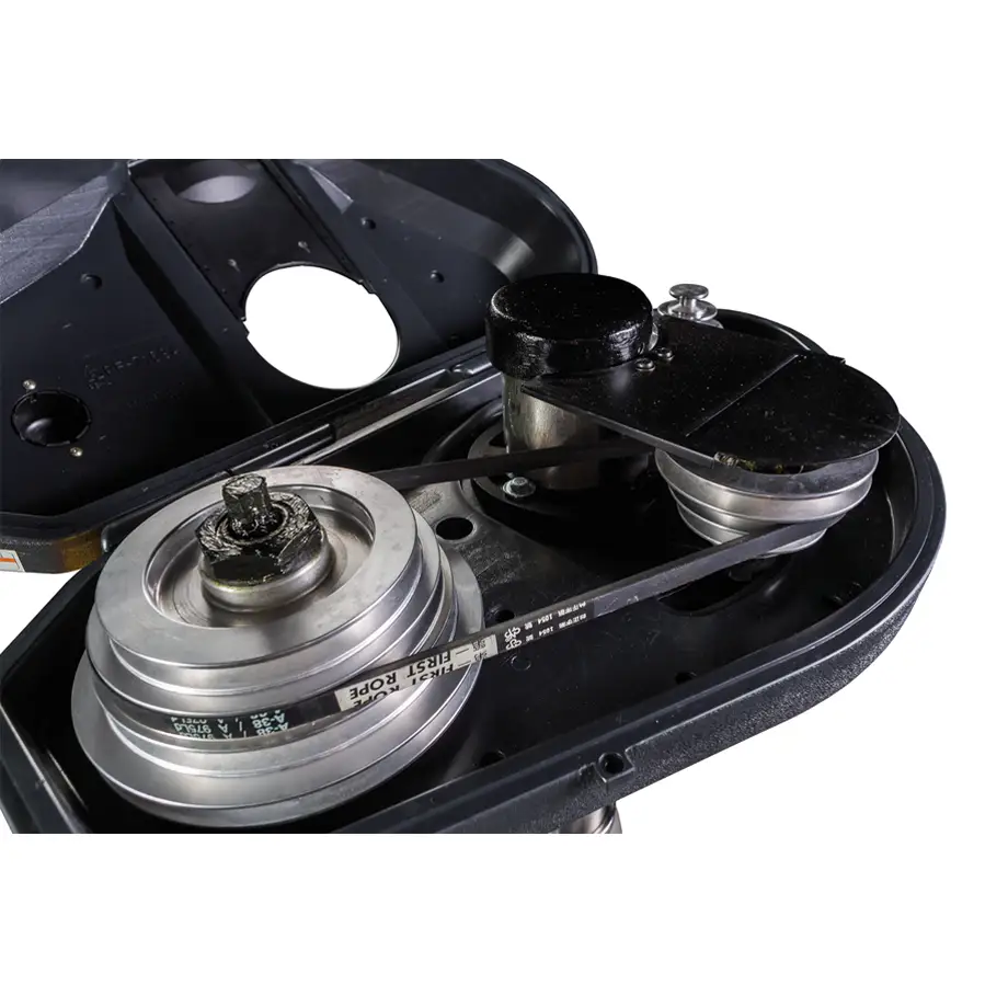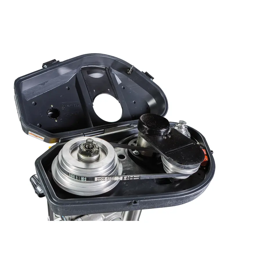 - Osłona paska z szybkim zamkiem przesuwnym umożliwiająca szybką zmianę prędkości wrzeciona