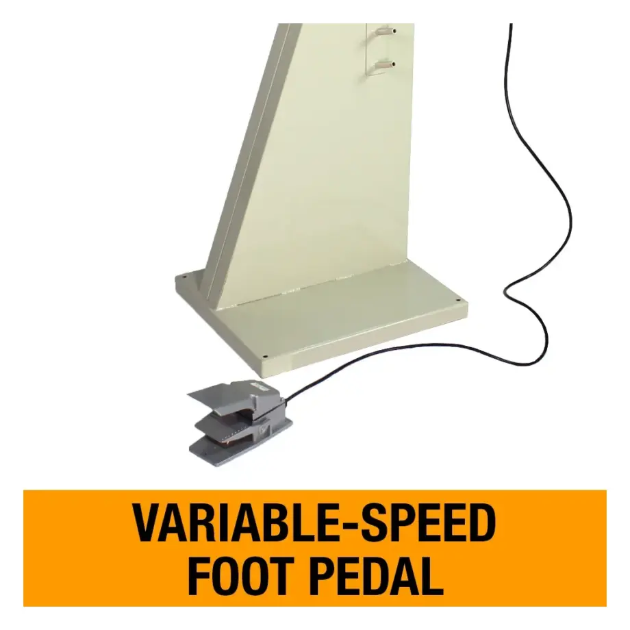 - Hands-free foot pedal control allows precise material positioning while improving accuracy and operator control