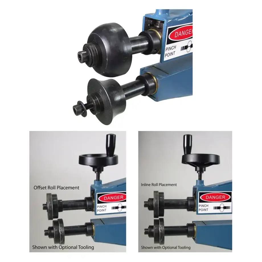 - Manual hand-crank operation drives the rolls smoothly for controlled bead forming
