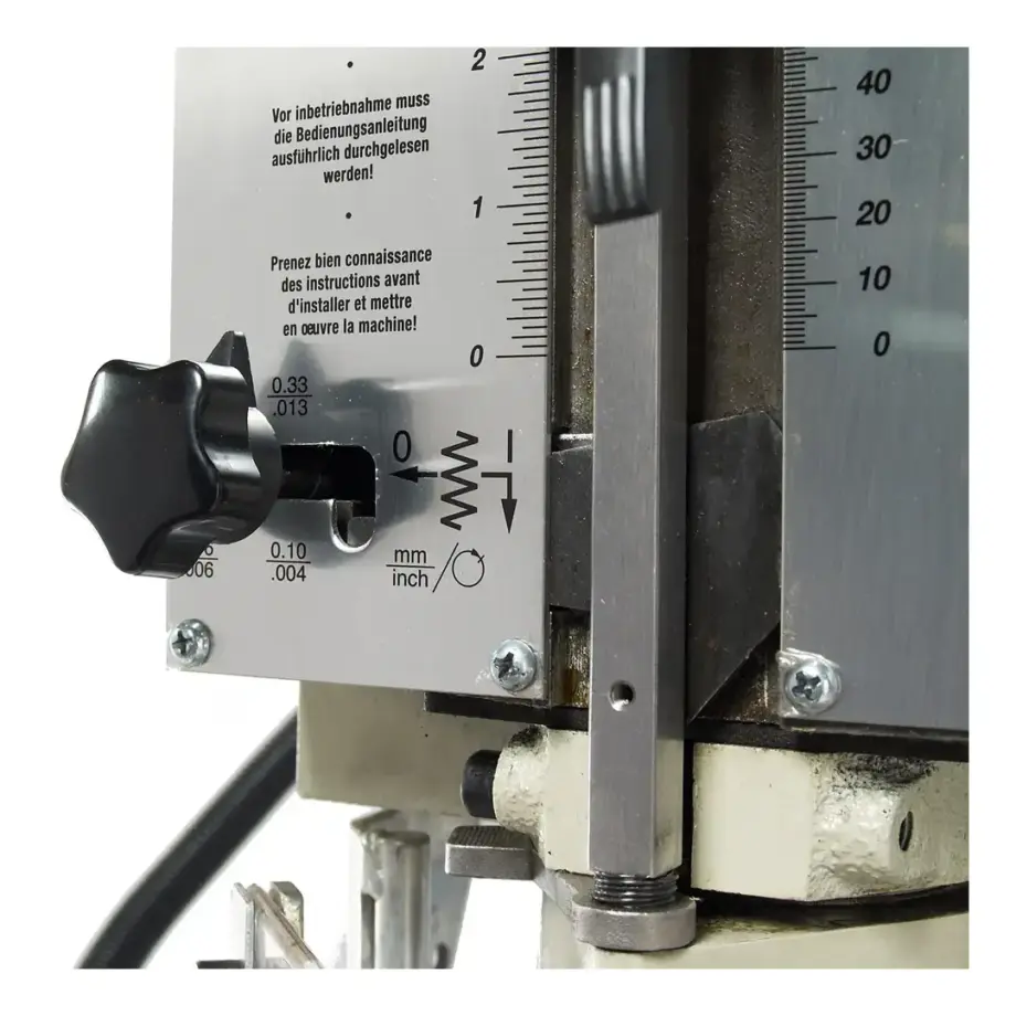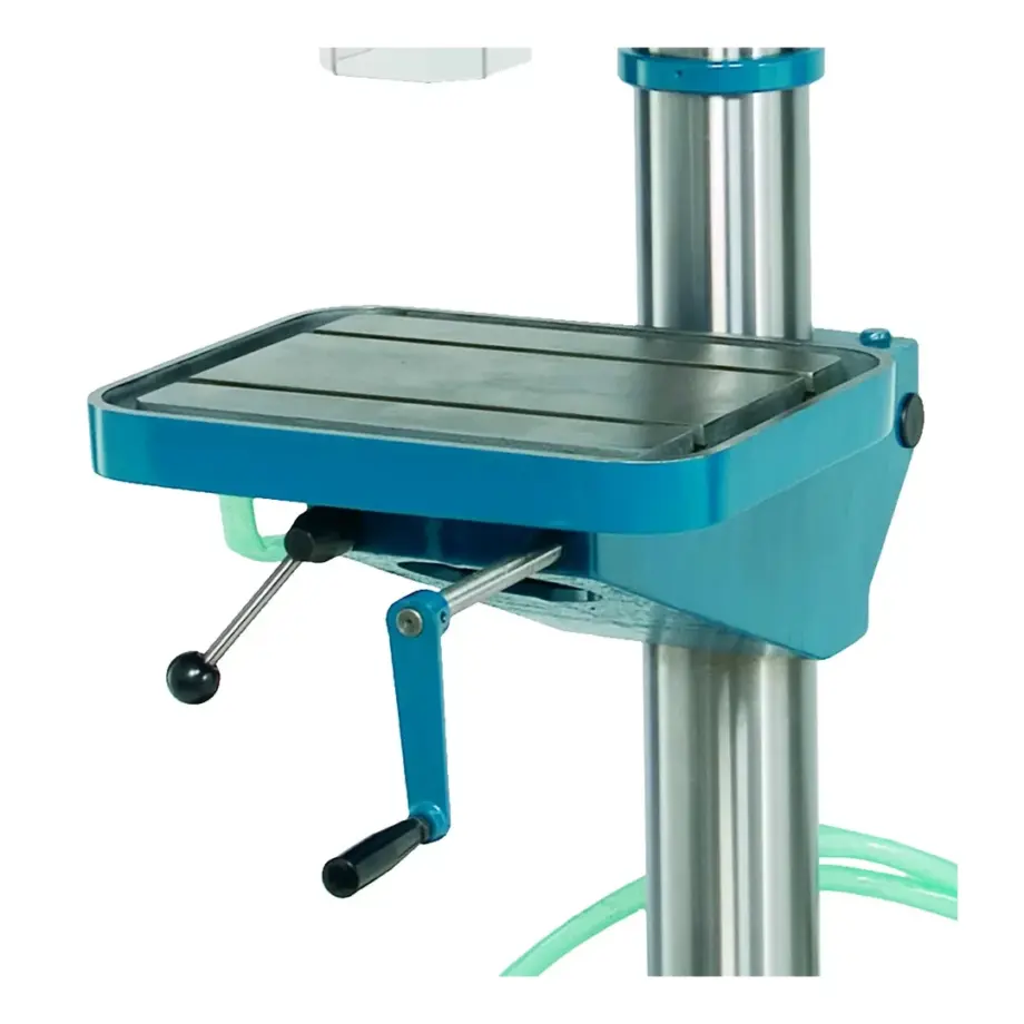 Built for demanding industrial applications the 20” Baileigh DP-1500G Gear Driven Drill Press features a heavy-duty cast iron base paired with a robust steel column to deliver exceptional rigidity and stability. This solid construction minimizes vibration and deflection, allowing the machine to maintain accuracy even during high-feed, large-diameter drilling operations.