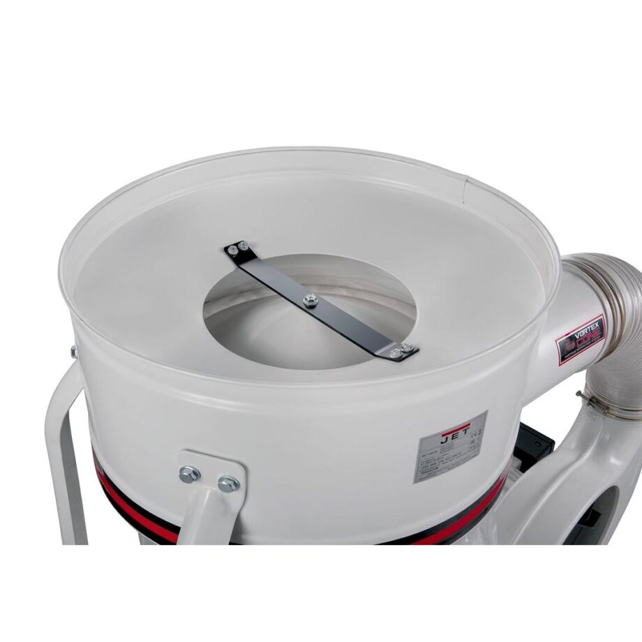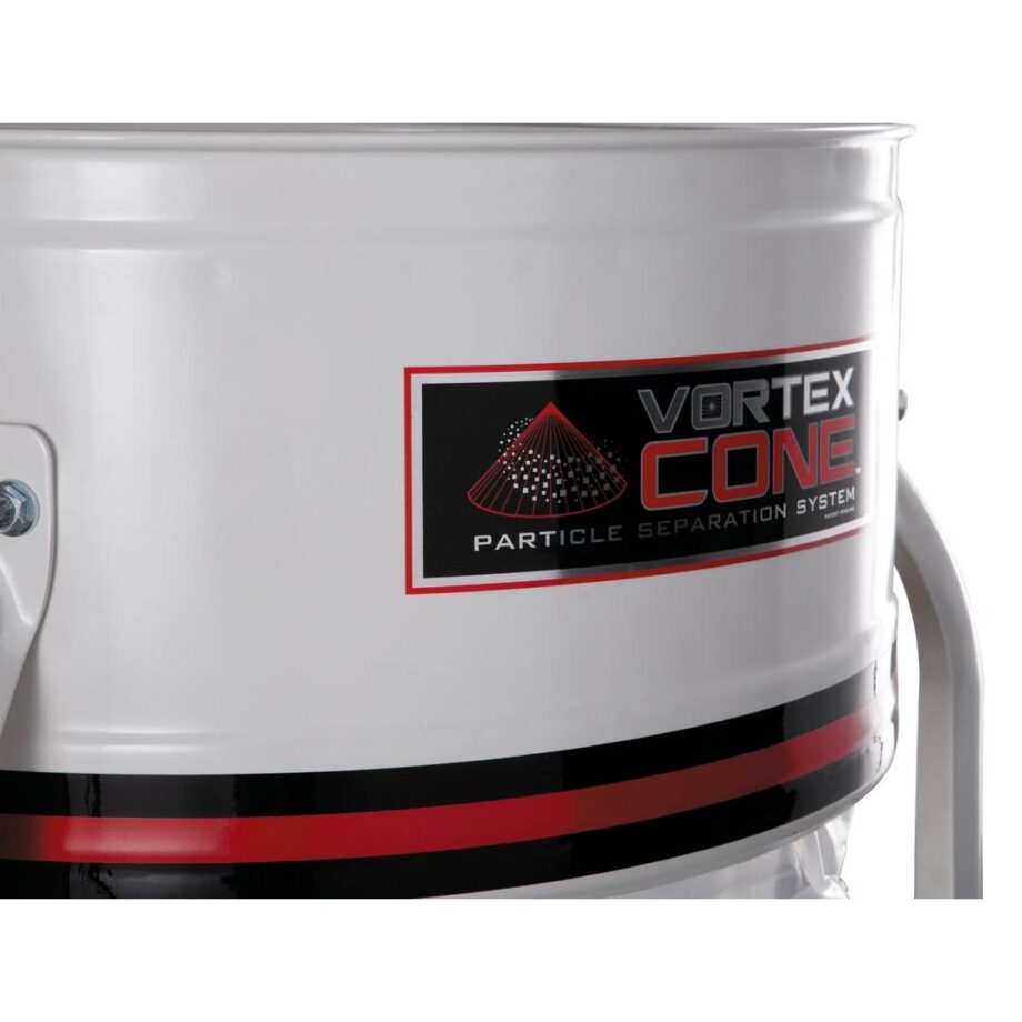 The patented Vortex Coneâ„¢ technology enhances dust extraction by significantly increasing efficiency, performance, and operational safety. By preventing chips and heavier debris from reaching the filter chamber, this system reduces clogging and ensures consistent suction power over extended operating periods, outperforming many dust collectors in its class.