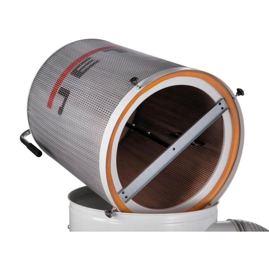 The Jet DC-1100CK Dust collector is equipped with a high-performance filter cartridge that removes up to 98% of fine dust particles, helping to maintain a cleaner and safer working environment. Driven by a powerful 1900 W motor, the unit delivers an airflow of up to 1620 m³/h, making it an excellent solution for small to medium-sized workshops.