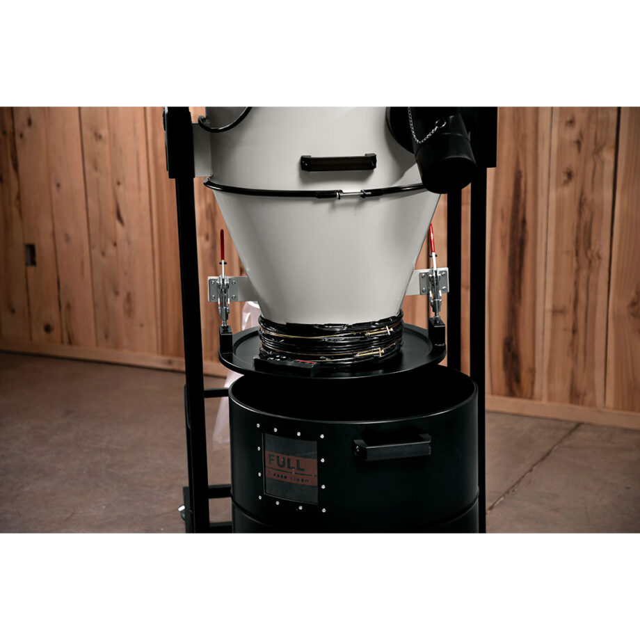 - Two-stage cyclone separation system delivers higher effective working CFM than comparable single-stage collectors with the same horsepower