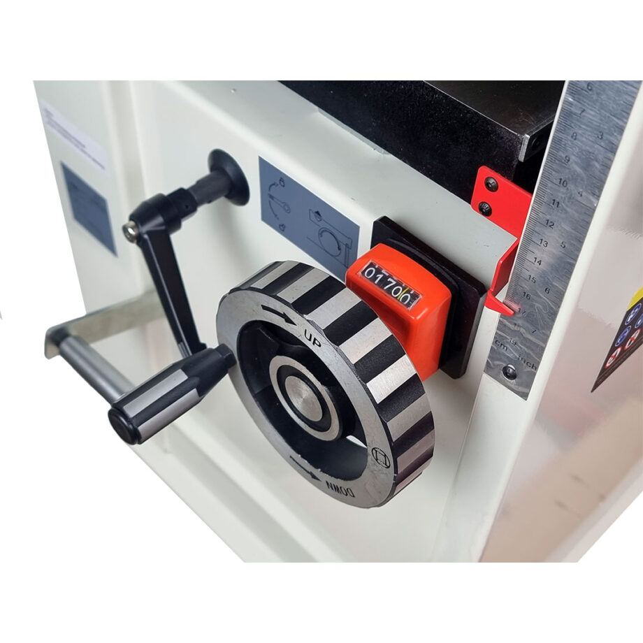 - Thickness table locking mechanism ensures that the table stays in place while planing lumber