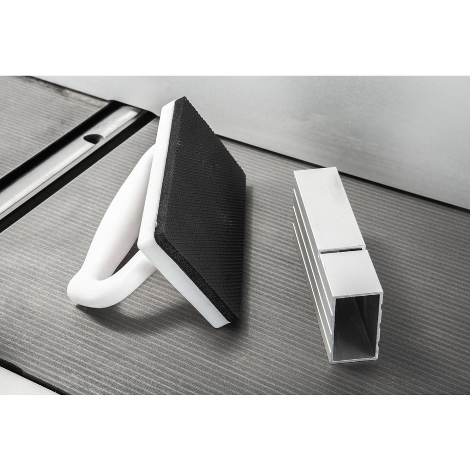 - Cast-iron tables ensure clean and precise cutting results