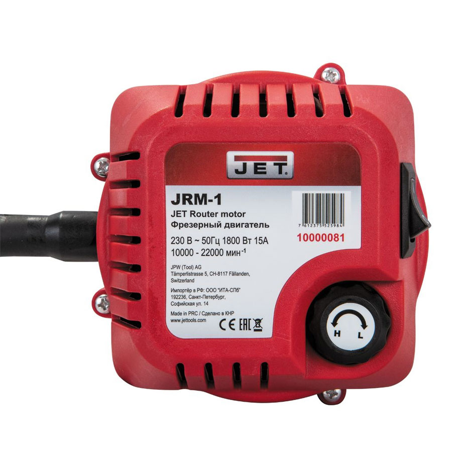 Jet JRM-1 1800W Router motor is designed to be mounted on Router Lift system or CNC woodworking machine. Featuring variable speed control, soft start and 6, 8, 12 and 12.7mm (1/2″) collet chucks for all kinds of router bits. Collets and bits are fast and easy to change with provided wrenches.