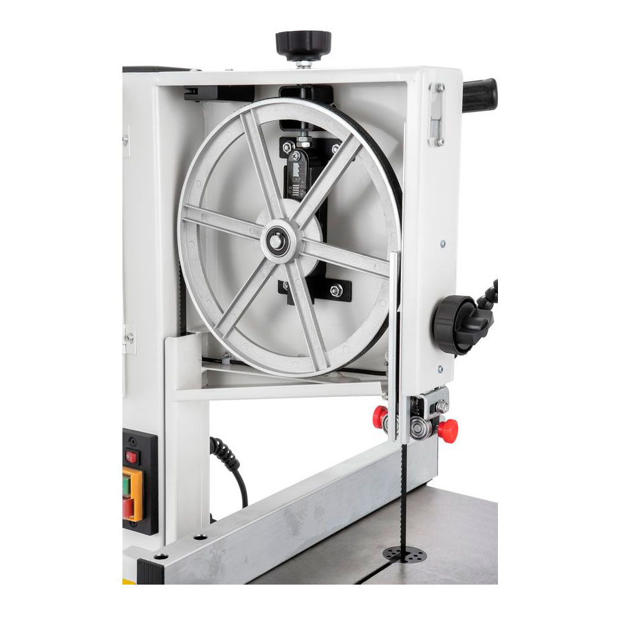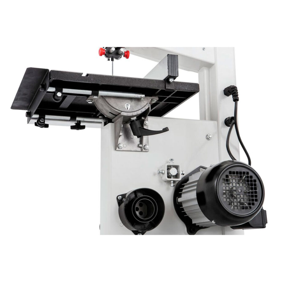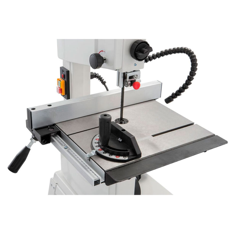 Comes with stand, LED-worklight, miter gauge and 10mm bandsaw blade installed.