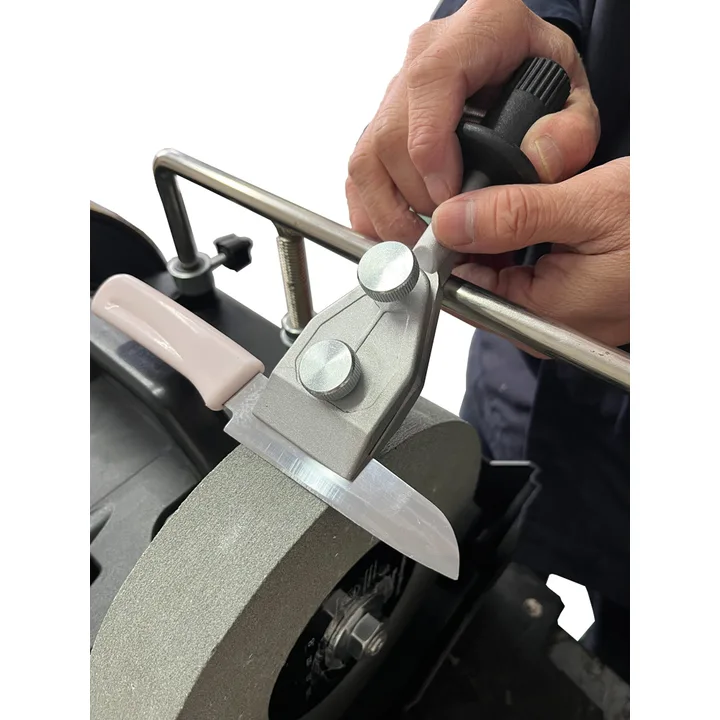Knife sharpening jig for knives, knife blades and pruning knives from 40 to 100 mm in lenght. Fits on all wet sharpeners.