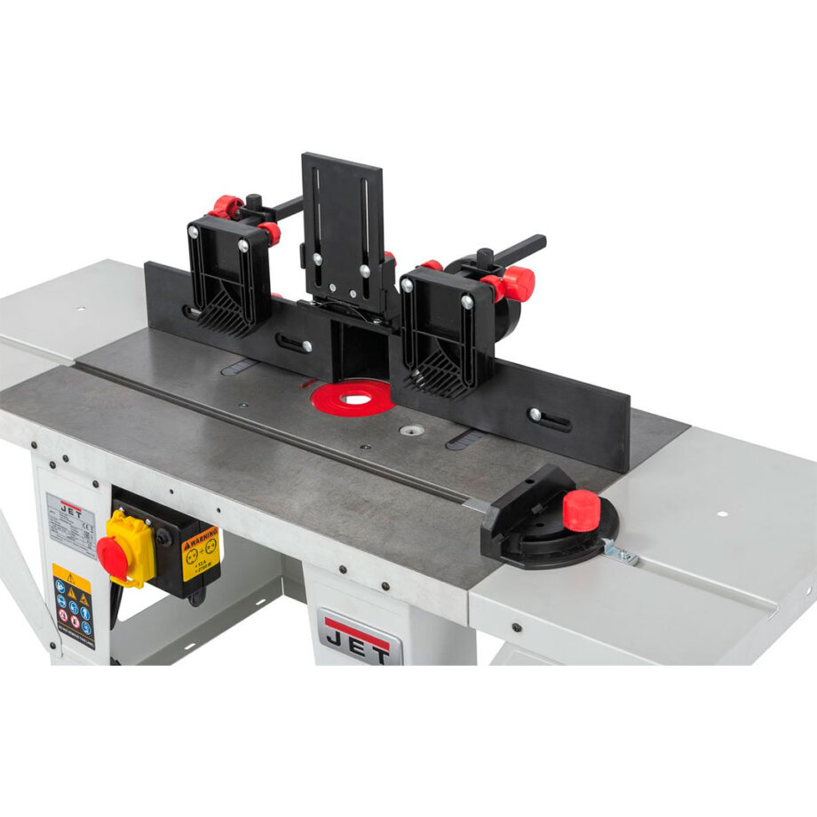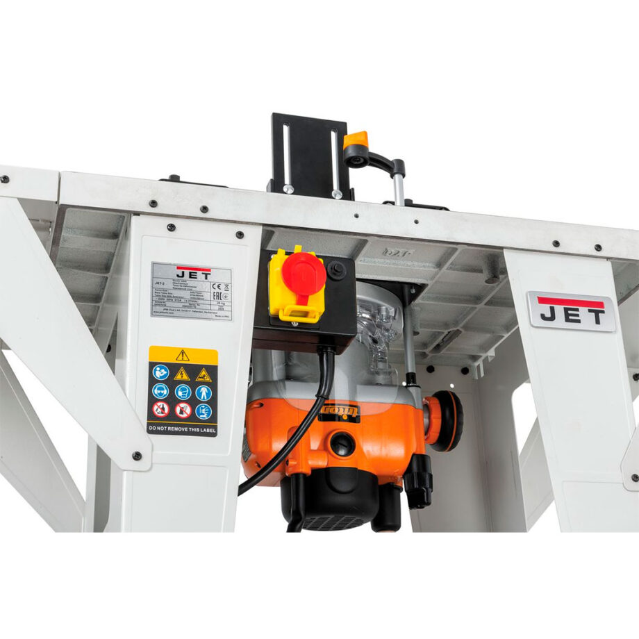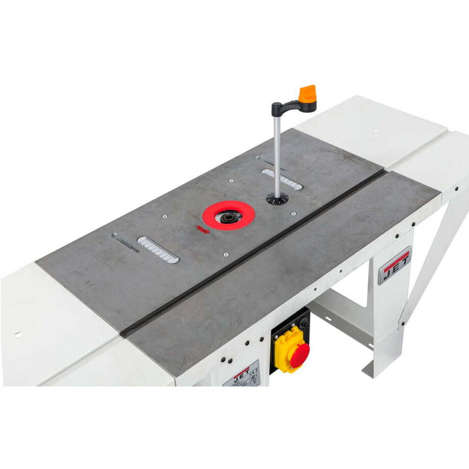 Jet JRT-2 fräsbord har ett stabilt bord i gjutjärn och metalliska förlängningsbord, vilket ger en stor arbetsyta på 1060 × 360 mm för alla typer av fräsarbeten.