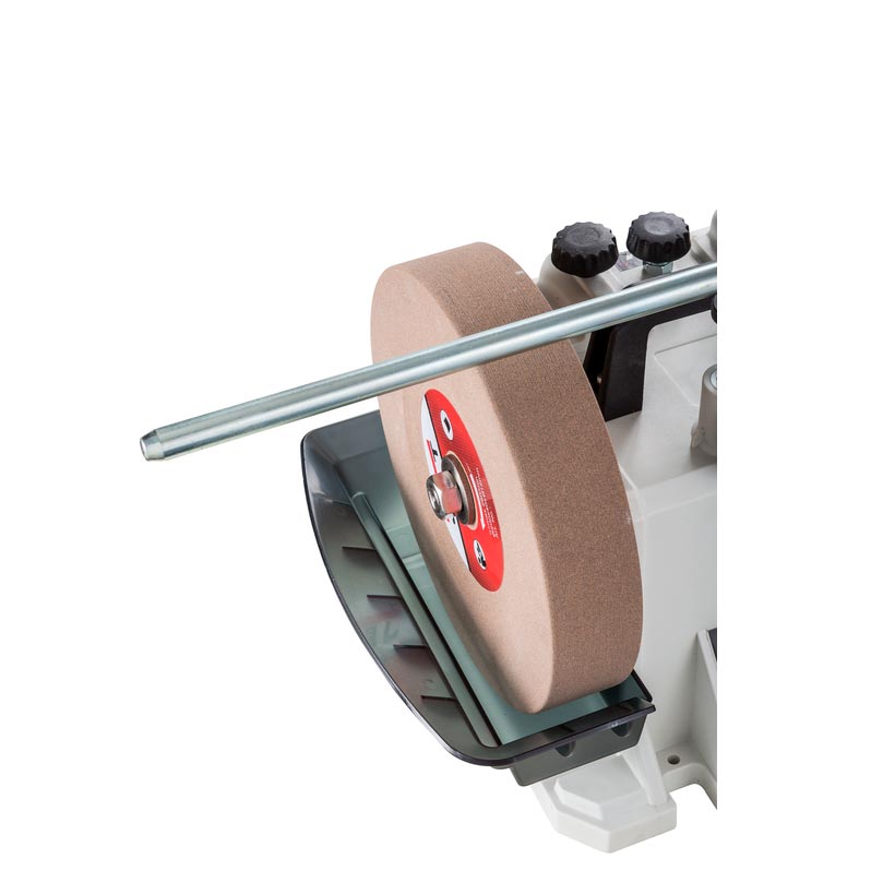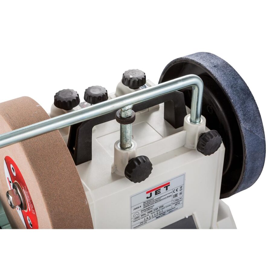 Den robusta konstruktionen ger stabilitet och jämn prestanda, medan den justerbara stödarmen möjliggör mångsidiga slipvinklar och kompatibilitet med olika jiggar och tillbehör. Oavsett om den används för mejslar, hyveljärn, knivar eller snidverktyg levererar JSSG-8 professionella resultat med lätthet.