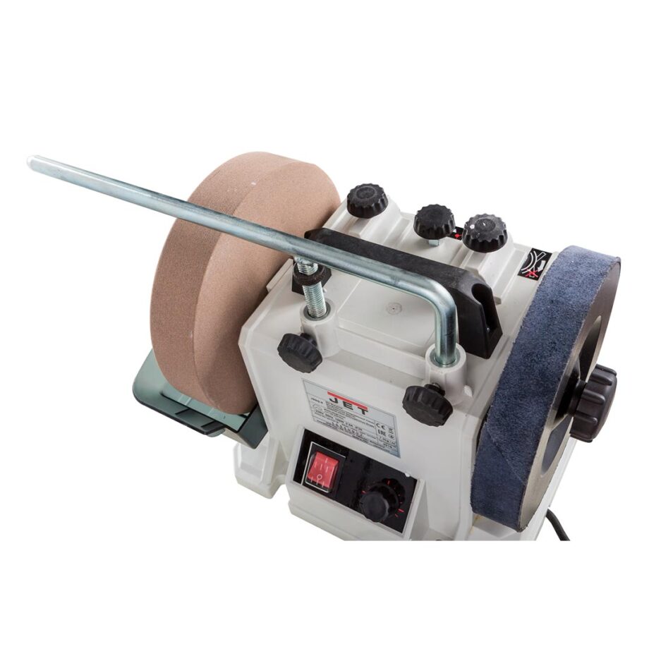 Jet JSSG-8 Våtslipmaskin är ett idealiskt verktyg för slipning, riktning och efterbehandling av handhållna skärverktyg med hög precision. Den har variabel hastighetskontroll, en slipskiva på 200 x 40 mm och ett läderband på 190 x 30 mm, vilket gör den lämplig för alla typer av slipningsuppgifter, från grovslipning till finslipning.